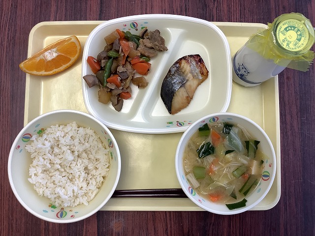 今日の給食のメニューは, ○麦ごはん ○さわらの照り焼き ○大根と鶏肉の煮物 ○きゃべつの味噌汁 ○いよかん ○牛乳 です。 今日の給食は,「和食」を用意しました。「和食」は,日本の主食である「ごはん」と「汁物」,焼き物や煮物,和え物などの「お... -