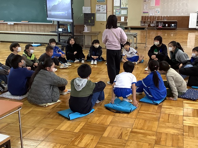 3月3日(火)に,今年度最後の「たかの子活動」が行われました。今回の主催は今年度の6年生です。先日行われた「6年生に贈る会」のお礼として取り組まれました。それぞれの縦割り班に分かれて,全校の子供たちが,楽しく活動することができました。会の最後には,6年生手作りのプレゼントが,6年生から子供たち一人一人に渡されました。