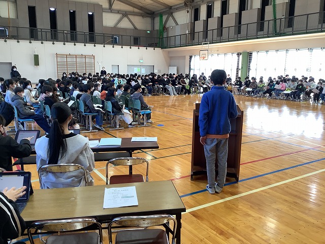 それぞれの意見に,児童会役員や各委員長の子供たちは,とても丁寧に回答をしてくれました。自分たちの学校を,民主的で開かれた,規律のある楽しい学校にしようと取り組んできたことがよくわかります。話し合いは,来年度の児童会活動にしっかりとつながる,素晴らしいものになりました。